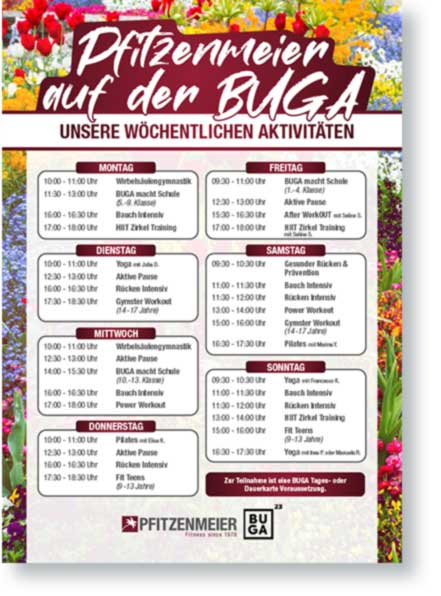 Dann lade dir hier den kompletten Pfitzenmeier BUGA-FITNESSKURS-WOCHENPLAN herunter.