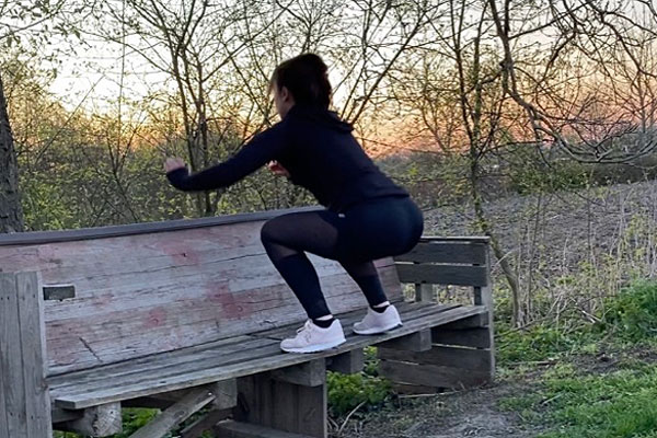 Achte dabei darauf, dass du auf der Bank mit den Knien im rechten Winkel oder tiefer bist. Dann springst du wieder von der Bank runter und wiederholst das Ganze.
