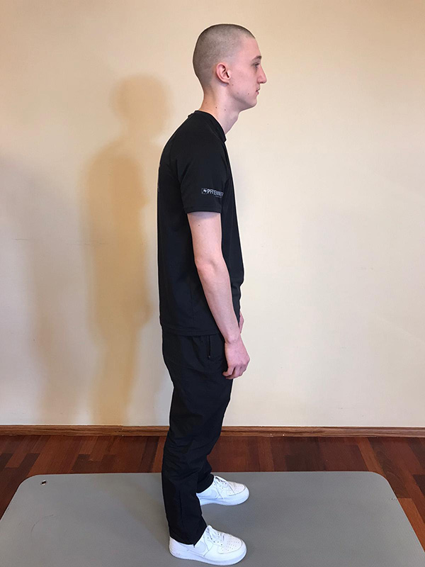 Der Kopf, die Hüfte und die Füße stehen in einer Linie untereinander, man spricht hierbei auch oft von der Körperachse.